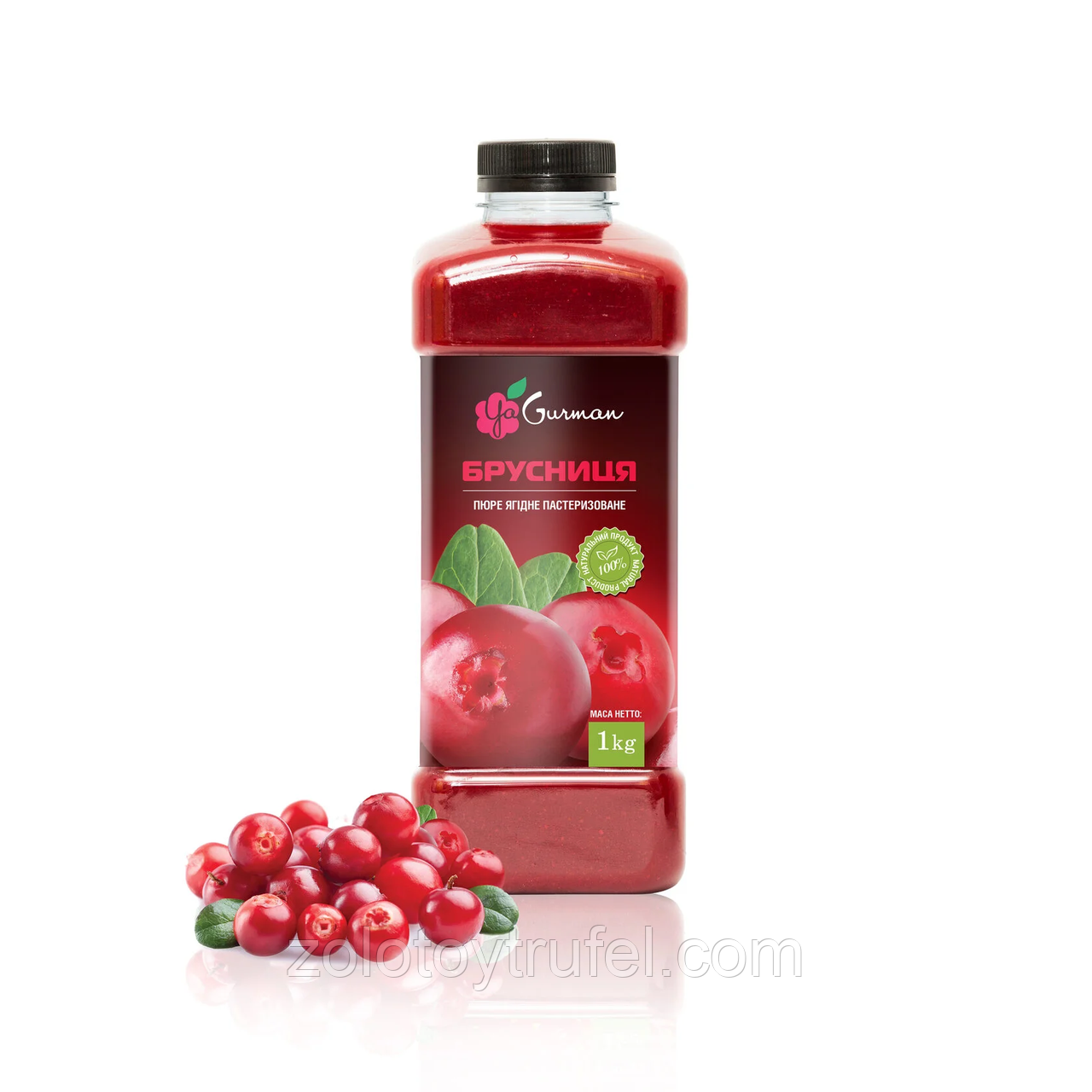 Пюре брусниці пастеризоване - 100% пюре без консервантів, барвників та ароматизаторів.